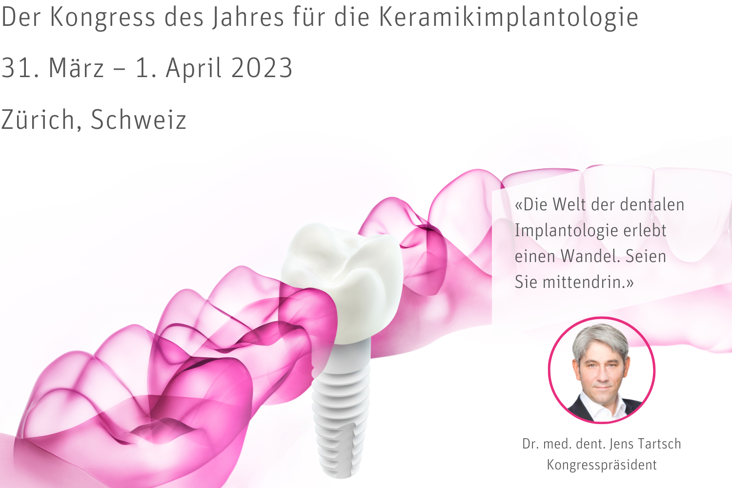 Hochkarätige Referenten werden der Frage der heutigen Stellung der modernen metallfreien Implantologie in der gesamten zahnärztlichen Implantologie nachgehen, sich auf evidente Forschung und Praxis beziehen und diese mit Ihnen diskutieren. Dr. Jens Tartsch übernimmt die wissenschaftliche Leitung der Veranstaltung.